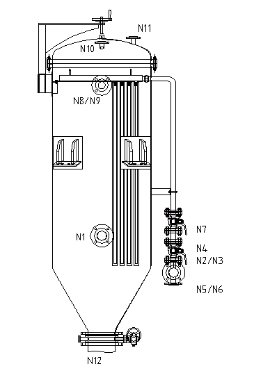 6、不管使用几台过滤机,均要配备一只反吹用“储气罐”,容积至少要0.5M3,10M3以上的过滤机,一般要1M3的储气罐(电镀液过滤机可以不用储气罐,而直接用小型空压机的空气反吹)。